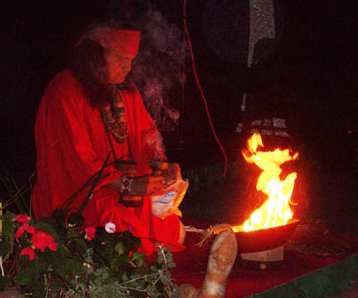 ceremony by entering in total darkness, burning sage, and saying prayers. A